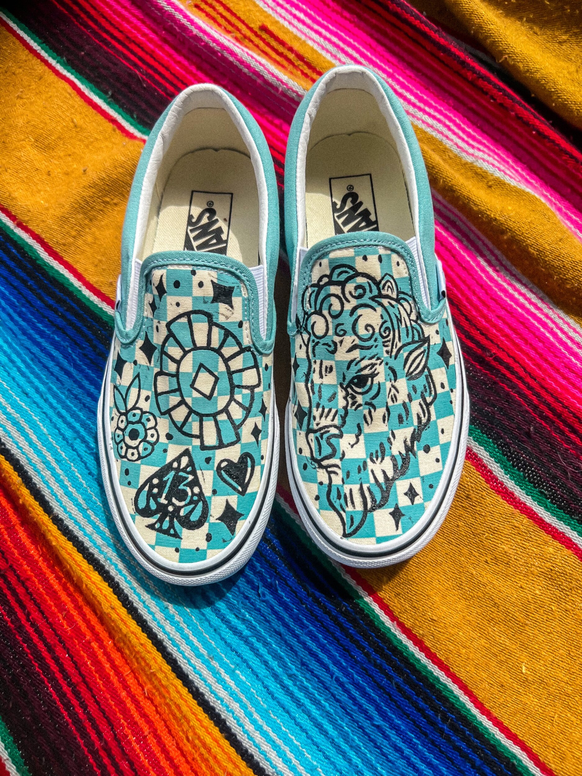 Ready to Ship Shoes Ready to Ship Shoes Amalfi Vans ð Sale Price: $150.00 Original Price: $250.00 Sold out Charm Bracelet Vans ðŦ Sale Price: $100.00 Original Price: $225.00 Sale Western Stamped Vans ðĪ Sale Price: $100.00 Original Price: $150.00 Sold out Lucky Charm Vans ð Sale Price: $150.00 Original Price: $250.00 Sold out Custom Painted Shoes $75.00 Heart Vans ð Sale Price: $150.00 Original Price: $250.00 Sold out Heart Vans ð $250.00 Sold out Floral Buck & Coyoteâs Trucker ð§Ē $30.00 Sold out Coastal Cowgirl Vans ð Sale Price: $150.00 Original Price: $250.00 Sold out Lemon Trucker ð§Ē $30.00 Sold out Quail Trucker ð§Ē $30.00 Sold out Talavera Trucker ð§Ē $30.00 Sold out Yallternative Trad Vans ðĩ $250.00 Sold out Jackalope Stamped Vans ð° $150.00 Sold out Jackalope Stamped Vans ð° $150.00 Sold out Cutesy Western Stamped Vans ð $150.00 Sold out Western Stamped Vans ðĪ $125.00 Sold out Buffy Stamped Vans ðĩ $125.00 Sold out Western Stamped Vans ðĩ $110.00 Sold out Buffy Neon Stamped Vans ð $125.00 Sold out Red Stamped Wranglers $35.00 Sold out Pink Panther Stamped Cap ð $25.00 Sold out Ragin Cajun Vans ð $125.00 Sold out Good Birdie Vans ðĨ $125.00 Sold out Black Western Stamped Vans ðĪ $110.00 Sold out Highwaymen Vans ðŠ $100.00 Sold out Tombstone Vans ðŠĶ $100.00 Sold out